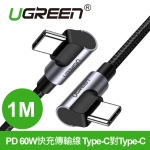 UGREEN綠聯 PD 60W快充Type-C對C金屬編織線 電競雙L型